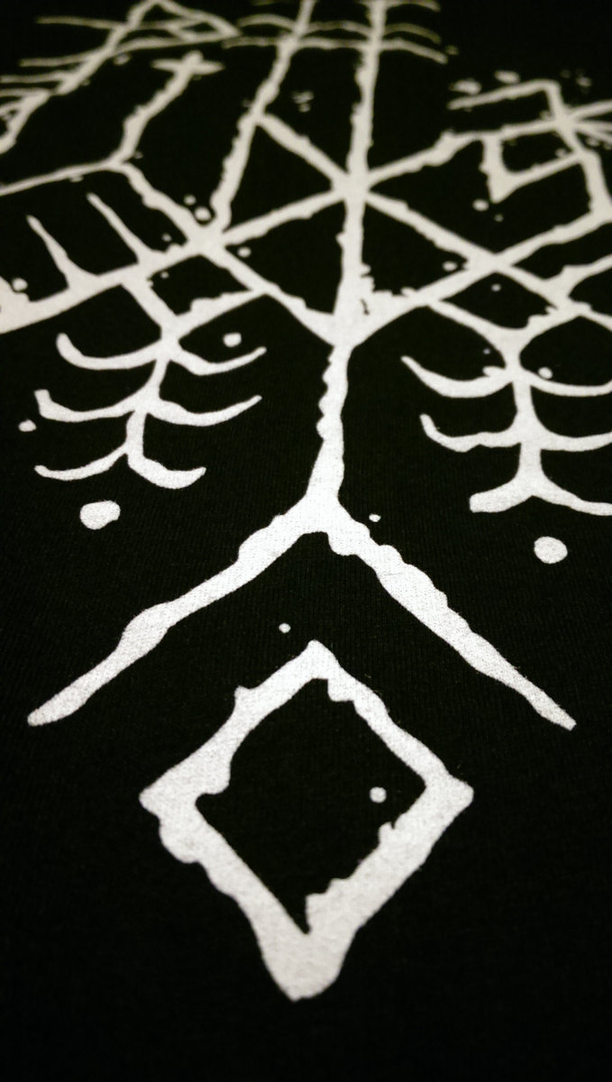 Printed on black 100% ringspun cotton t-shirts using discharge ink, for an image that won't fade, crack, peel, or feel like a giant sticker.